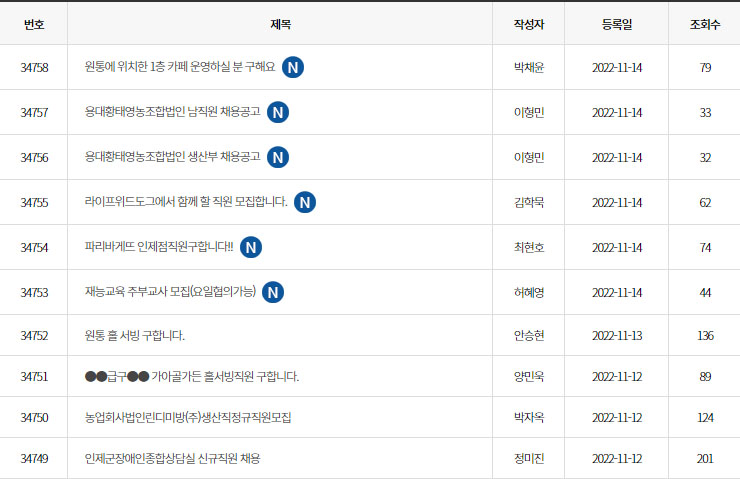 많은 지자체에서 구인구직 게시판을 운영을 하는 경우가 많습니다. 그렇지 않은 지자체 또한 있기도 하고요. 인제군청은 다행히도 구인구직 게시판을 운용하고 있습니다. 인제군청 구인구직 경우에는 군청 공무원이 게시판을 직접 관리를 하고 있기 때문에 더욱 안정적인 일자리를 구할 수 있으리라 기대가 됩니다.